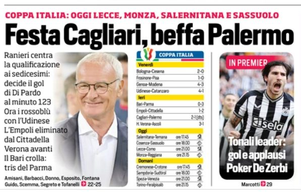 Scopriamo il riepilogo degli incontri di Coppa Italia disputati ieri: Cagliari e Verona avanti, scontro cadetto a favore del Parma...