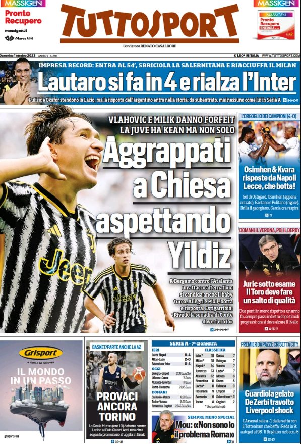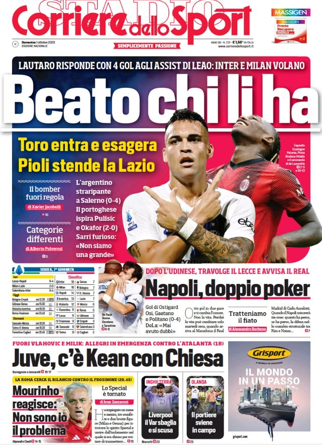 Queste le prime pagine dei maggiori quotidiani sportivi in edicola oggi...