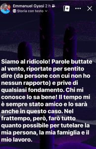 “Siamo al ridicolo”, scrive il giocatore su Instagram, “parole buttate al vento, riportate per sentito dire da persone con cui non ho nessun rapporto e prive di qualsiasi fondamento. Chi mi conosce sa bene! Il tempo mi è sempre stato amico e lo sarà anche in questo caso. Nel frattempo, però, farò tutto quanto possibile per tutelare la mia persona, la mia famiglia e il mio lavoro”.