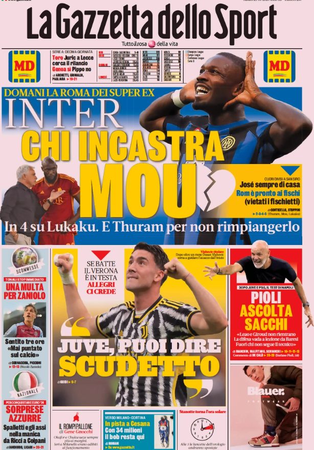 Queste le prime pagine dei maggiori quotidiani sportivi in edicola oggi...