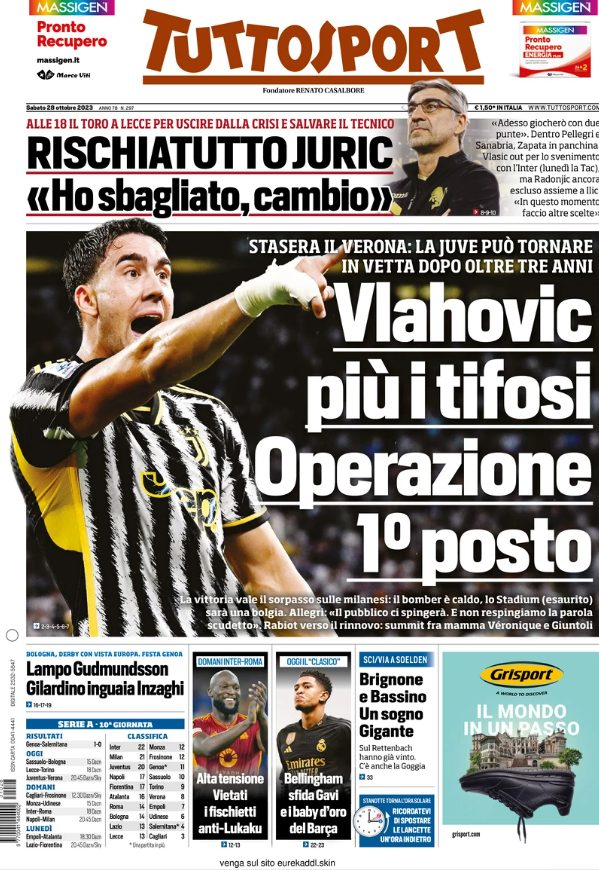 Un saluto a tutti i nostri lettori: iniziamo, come di consueto, con le prime pagine sportive in edicola. Restate con noi!