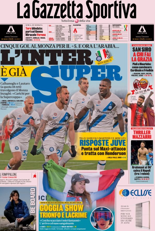 Queste le prime pagine dei maggiori quotidiani sportivi in edicola oggi...