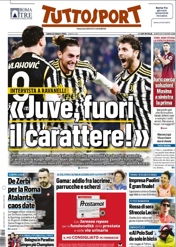 Queste le prime pagine dei maggiori quotidiani sportivi in edicola oggi...