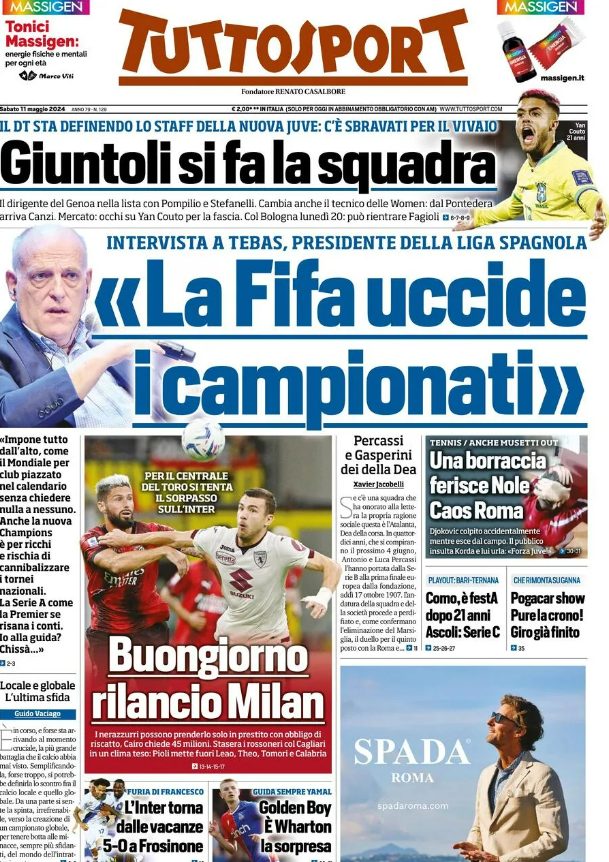Buongiorno a tutti i nostri lettori! Cominciamo, come di consueto, dalle prime pagine sportive in edicola.