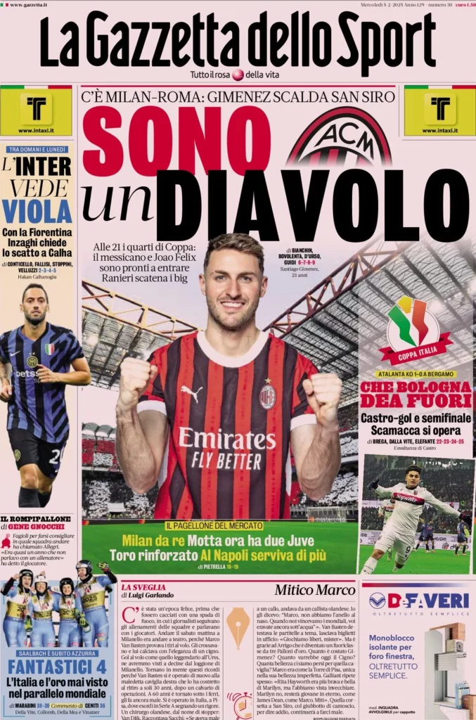 Queste le prime pagine dei quotidiani sportivi in edicola oggi...