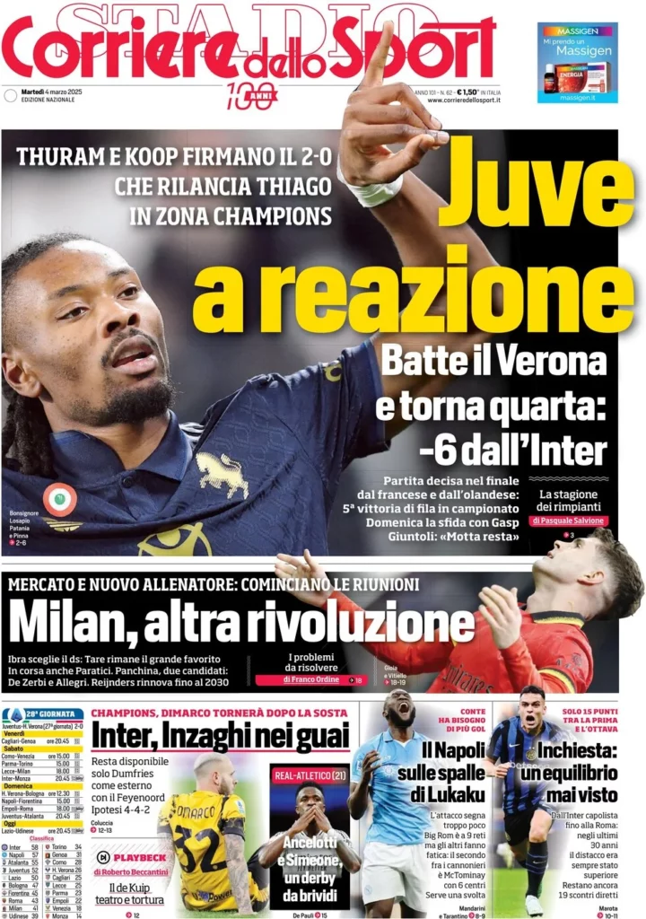 Queste le prime pagine dei maggiori quotidiani sportivi in edicola oggi...