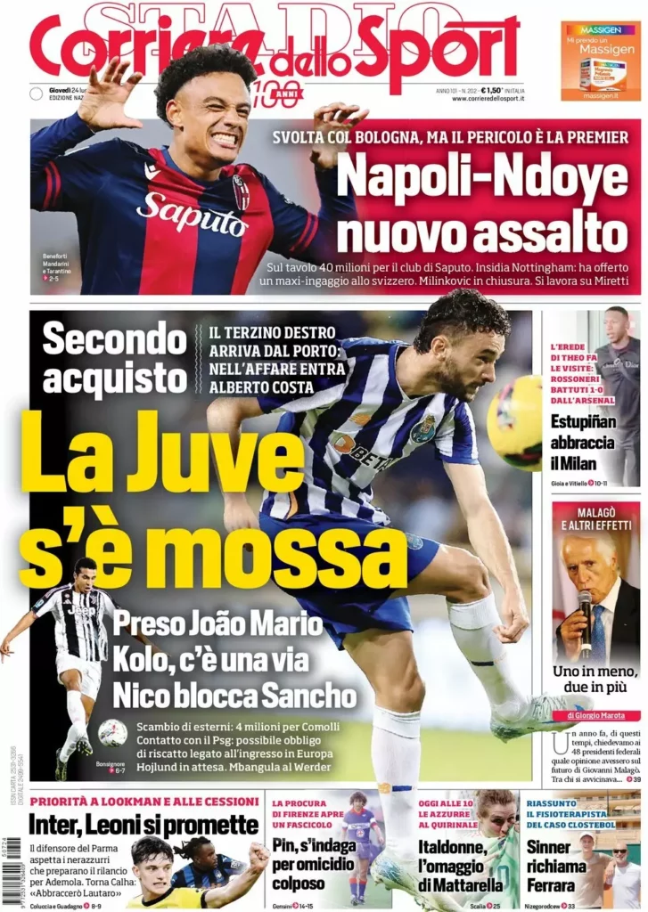 Queste le prime pagine dei maggiori quotidiani sportivi in edicola oggi...