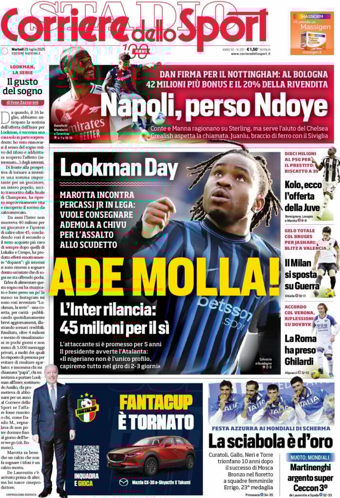 Queste le prime pagine dei maggiori quotidiani sportivi in edicola oggi...